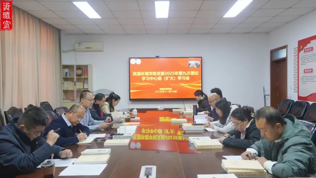 11月19日,院党委理论学习中心组召开2025年度第九次学习(扩大)会,学院党委理论学习中心组成员、全体党支部书记参加会议,会议由院党委书记贾昊昱主持。