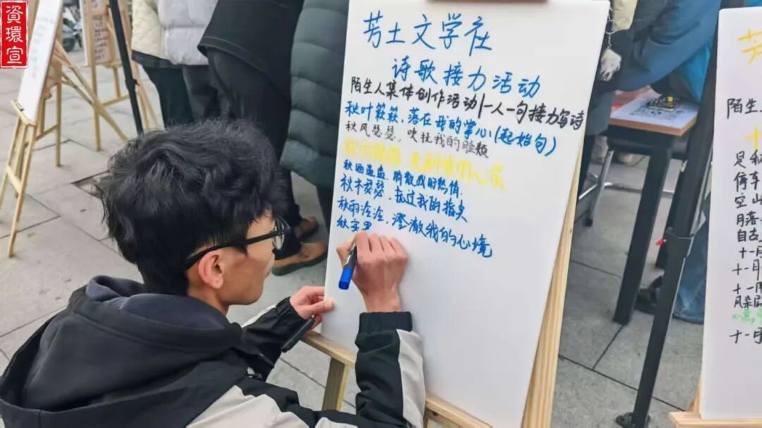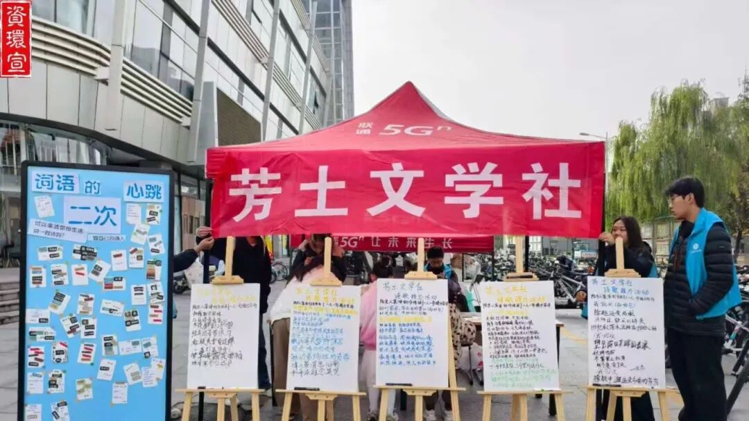为丰富校园文化生活,弘扬中华优秀传统文化,激发学子对诗词文化的热爱与理解,11月8日上午,我院芳土文学社于谷园西侧成功举办 “韵别千秋叶,诗话新冬阳 —— 立冬主题诗词接龙、拼贴诗活动”。院分团委辅导员贾洋莅临现场指导,社团成员及校内众多文学爱好者踊跃参与其中。