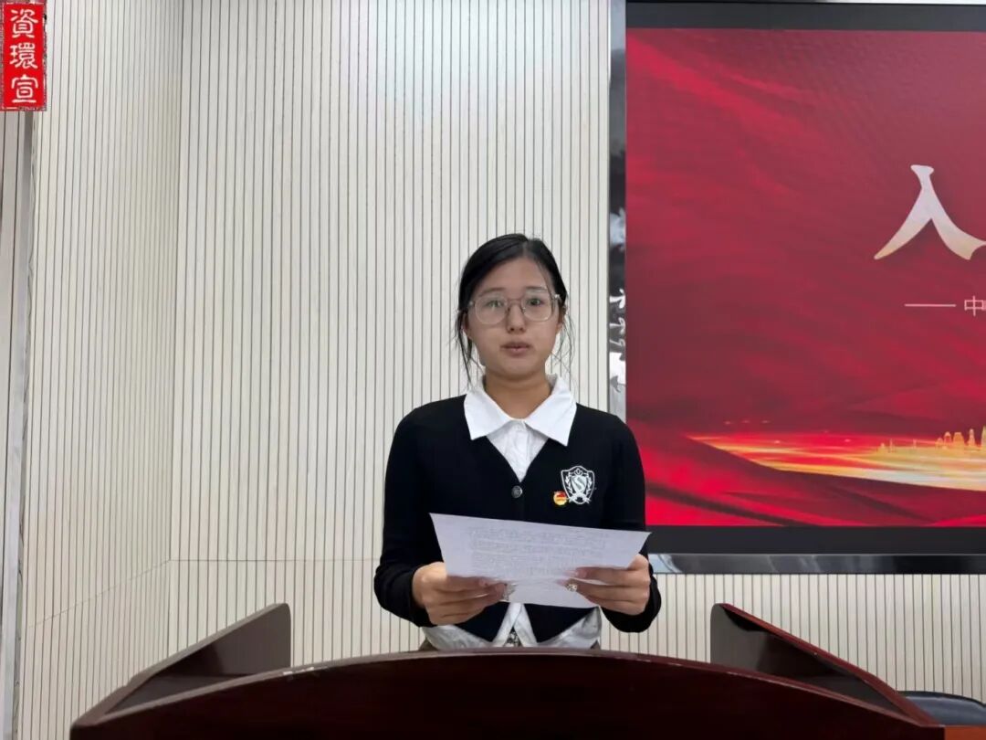 新团员代表郭萧文上台发言,她认为共青团是青年先锋队与“四有”青年培养摇篮,承载着引领青年成长成才的使命。她呼吁团员以高标准要求自己,提升素养、履行职责、遵守章程,以实际行动践行团员使命,落实新时代青年的责任与担当。