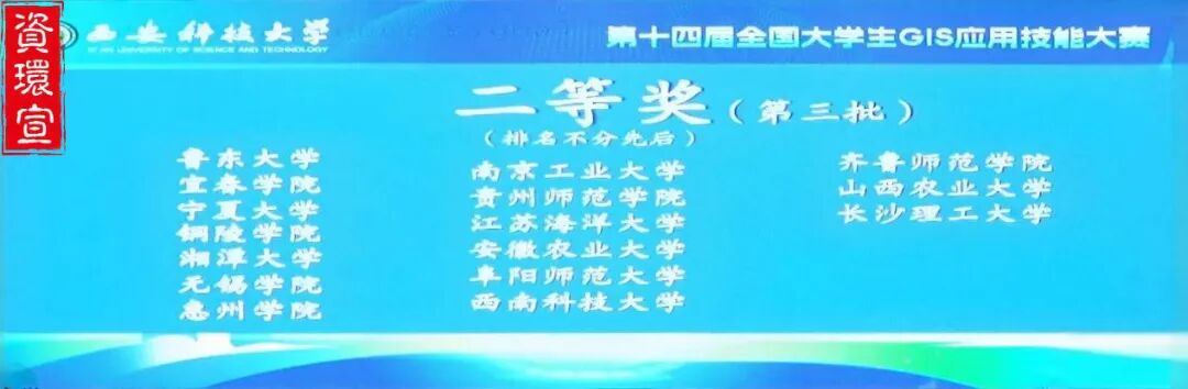 经过激烈角逐,由我院地理信息科学专业的张慧洋、王林凤、张江瑜和张紫杨组成的山西农业大学代表队(指导老师:刘立文、荆耀栋),凭借其深厚的理论知识、精湛的专业技能以及卓越的团队协作能力,运用数据镶嵌、投影变换、近邻分析、栅格计算、核密度分析、流域分析等专业技能,成功完成了空间数据预处理、遥感影像数据匹配、水体和建成区提取、野生动物时空分布、数字高程模型构建以及综合道路规划等任务,在众多参赛队伍中崭露头角,荣获全国二等奖的殊荣。