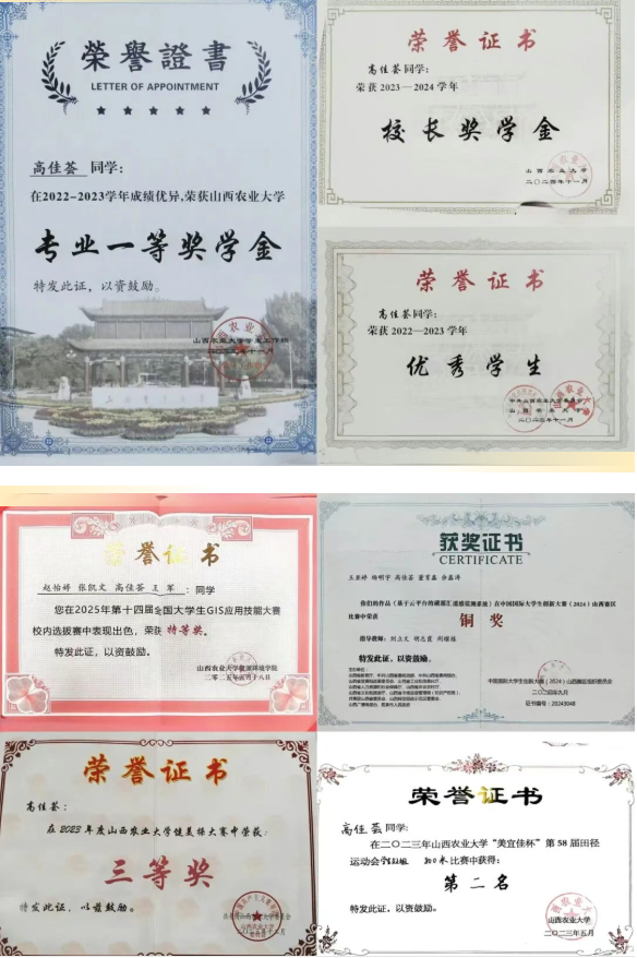 2.2023年,荣获校运会女子800米第二名,山西农业大学健美操大赛三等奖;
