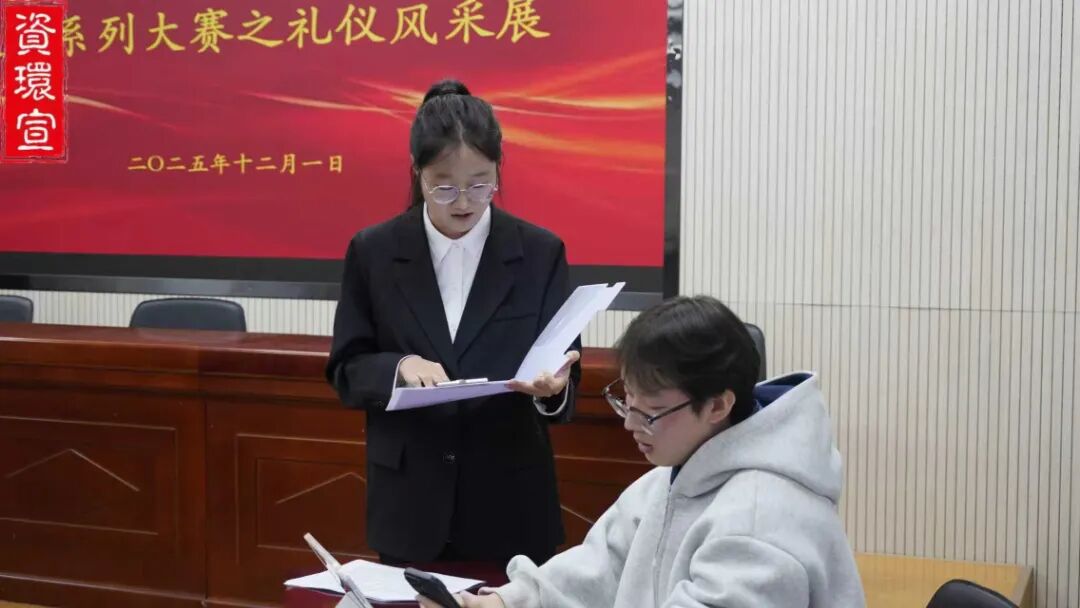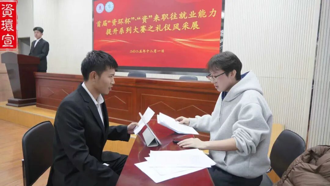 为切实提升学生就业能力,帮助同学们熟练掌握职场礼仪规范与面试实战技巧,12月1日,我院于主楼401成功举办首届“资环杯”礼仪风采展大赛。院党委副书记张杰、分团委副书记祁静静、分团委副书记杨润、分团委辅导员贾洋担任评委,同时特邀山西金瓯集团副总经理郭恒冉莅临指导,学院各班学生代表到现场观摩。