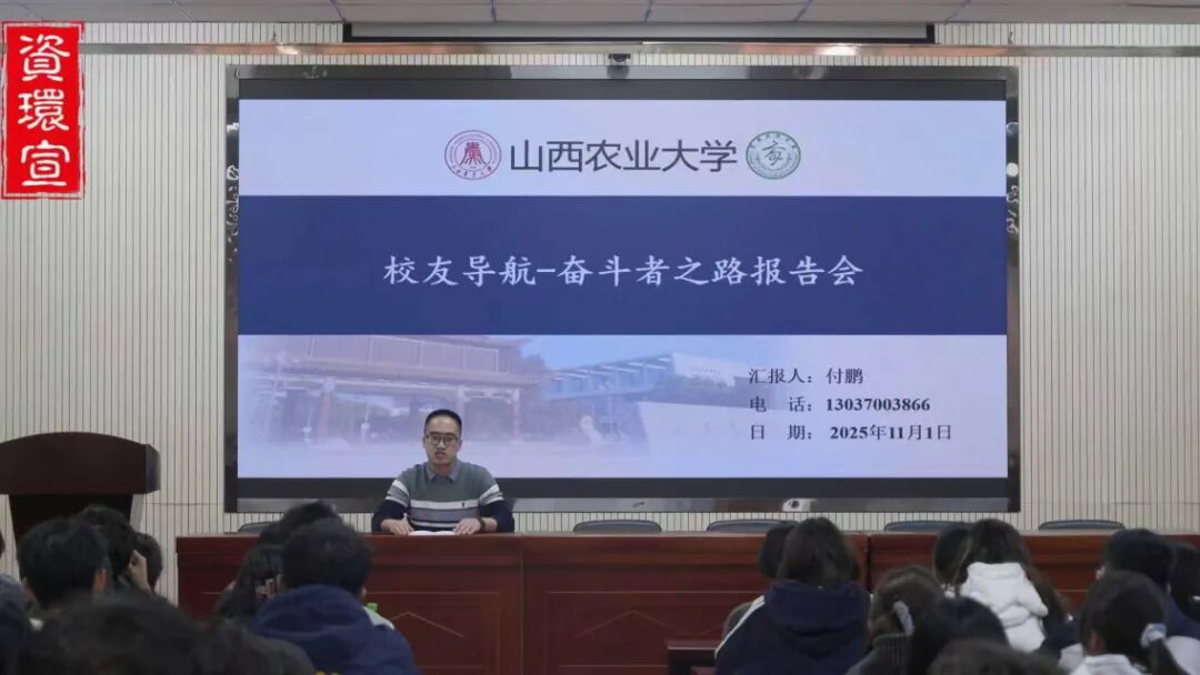 为充分发挥优秀校友的引领作用,帮助同学们明晰成长路径、锤炼综合素质、坚定理想信念,11月1日下午,我院于主楼401成功举办校友导航分享会,我院17级校友付鹏担任主讲人会议,由分团委副书记祁静静主持。