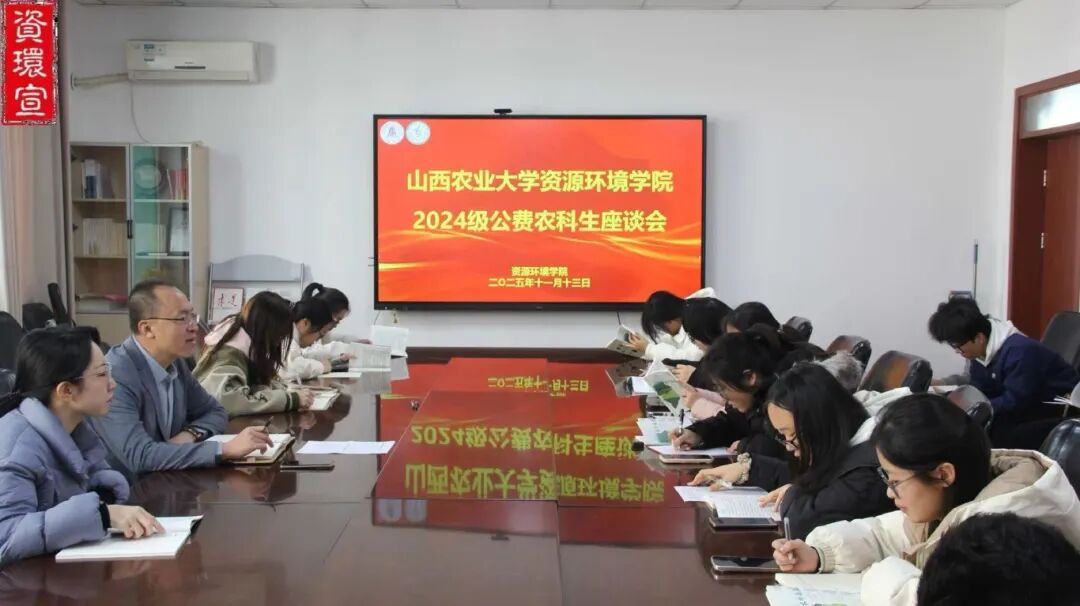 2025年11月13日上午,我院在主楼302会议室召开24级农业资源与环境专业公费农科生座谈会,院党委书记贾昊昱、分团委辅导员姚波及资环2402班全体公费农科生参会。