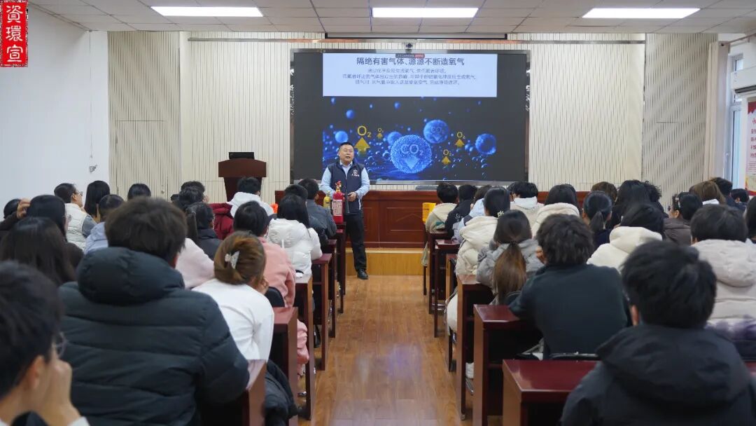 培训中,王涛围绕"防护优于灭火,自救重于等待救援"的主题,结合真实案例,系统讲解了火灾预防、应急处置和逃生自救知识。他现场演示了多种消防器材的正确使用方法,并强调现代火灾中无氧窒息和有毒气体中毒是主要致命因素,提醒师生注意用电安全,避免充电宝过夜充电、及时更换老化电器,并对师生日常消防安全提出三点行动建议,一是每日检查用电安全,二是主动学习消防知识,三是及时更换过期消防产品。