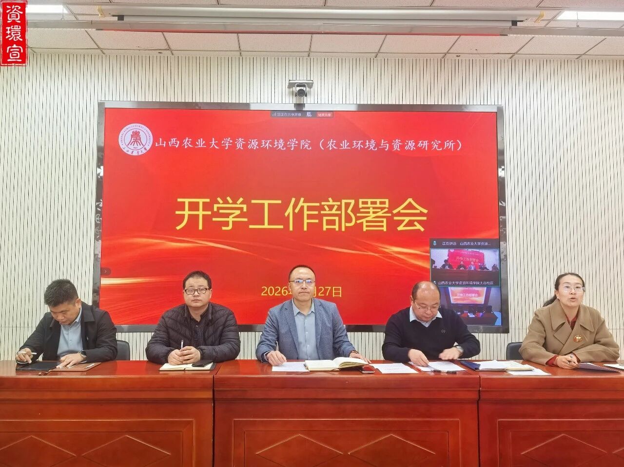 2月27日,我院在太谷校区资环楼401会议室及龙城校区环资所206会议室同步召开2026年春季学期开学工作会,全体院领导及教职工参会,会议由副院长(副所长)马建芳主持。